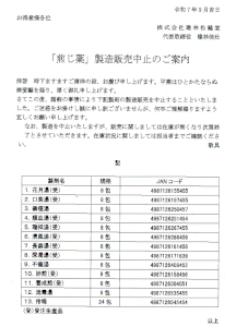 さてこの度、諸般の事情により下記製剤の製造販売を中止することといたしま