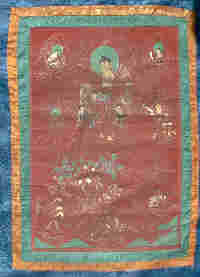 中央に阿弥陀三尊を描き、周囲には龍樹の